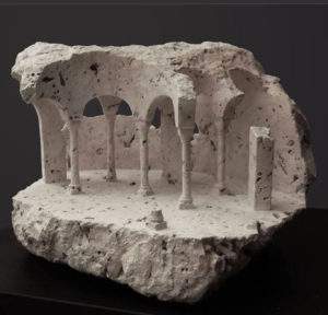 Matthew SIMMONDS est un Britannique né en 1963. Il a une formation de sculpteur sur pierre et de restaurateur pour les monuments historiques. Un jour, il a décidé de se consacrer à ses propres créations, en réalisant des performances dans de petites sculptures « de table », en marbre ou en calcaire. Il reprend, en petit, l’esthétique gréco-latine ou la finesse des colonnes renaissance ou la puissance du baroque, en sculptant des miniatures en tous points admirables et touchantes.
